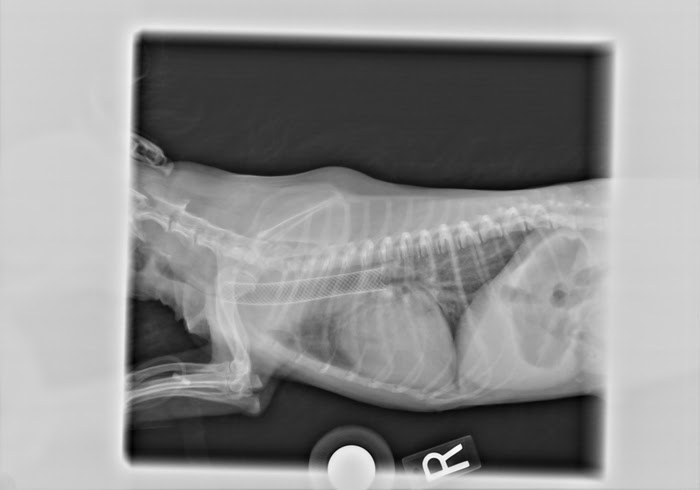 Chest and neck x-rays of dog with collaping trachea